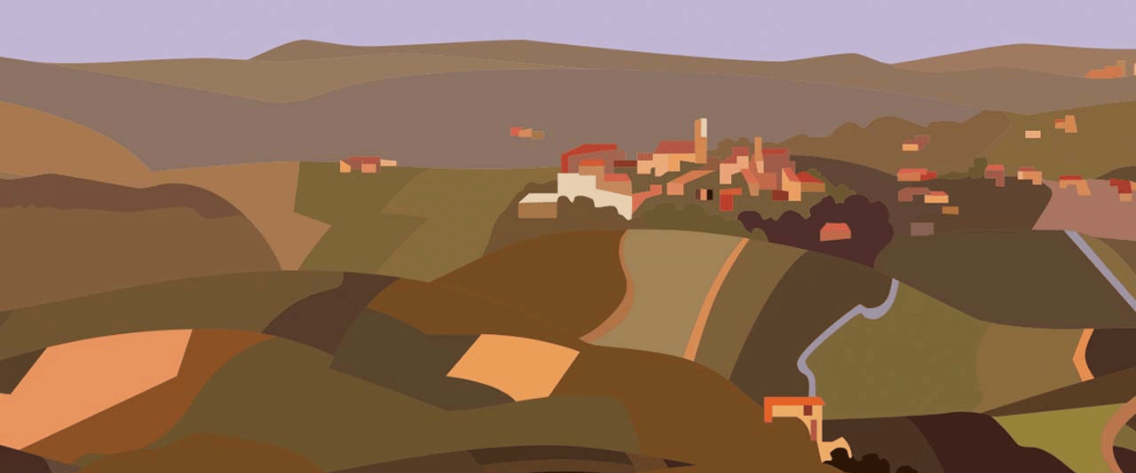 Scopri "Alba Truffle Flavour", Ambientazione dell'illustrazione iconica di Pierpaolo Rovero che cattura la magia della stagione del tartufo bianco ad Alba. Un'opera ricca di dettagli, dove storia e tradizione si fondono in una rappresentazione vivace della raccolta del tartufo. Dettaglio cane e cavatore